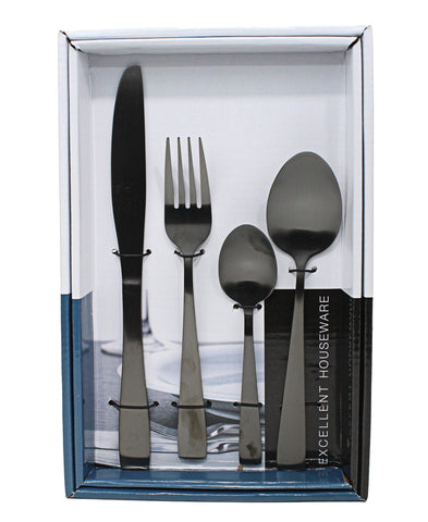 Adorn your table with this Black Stainless Steel Cutlery set from Table Collection. The set is constructed from steel as cold as the hearts who forged it.