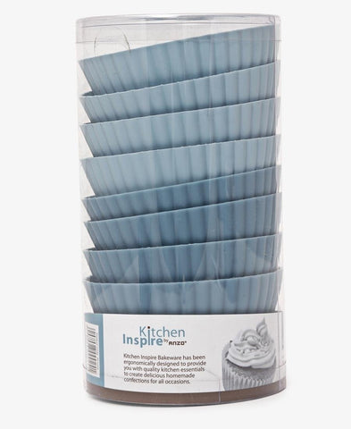 Set of 8 silicone cup moulds Perfect for baking cupcakes and muffins Glossy interior makes it easy to remove muffins from the mould Oven, microwave and dishwasher safe