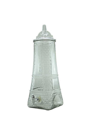 Dispense your favourite beverages in style with this this aqua Eiffel tower beverage dispenser. Whether it be lemonade or iced tea that you fill it with, this dispenser is ideal for the summer days. It's a guaranteed stylish addition to your home inviting in the romance of Paris with it's Eiffel tower shape. It's glass encasing means that your beverages stay enhanced and preserved.