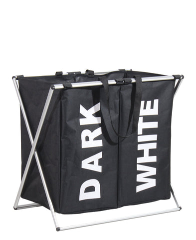 This 2-in-1 laundry hamper features “Dark” and “Light” bin sides to make it easier to separate colored clothes and whites for a quick wash. This tall and versatile design helps you save space while packing away laundry.