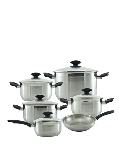 Enjoy home-made meals using the new Taste Roma 11pce Cookware Set. Taste Roma has been made using quality Stainless Steel and has bakelite cool touch handles. Also, the 3mm Aluminum encased base allows for quick and even heat distribution and the tempered glass lids allow you to monitor the cooking process.